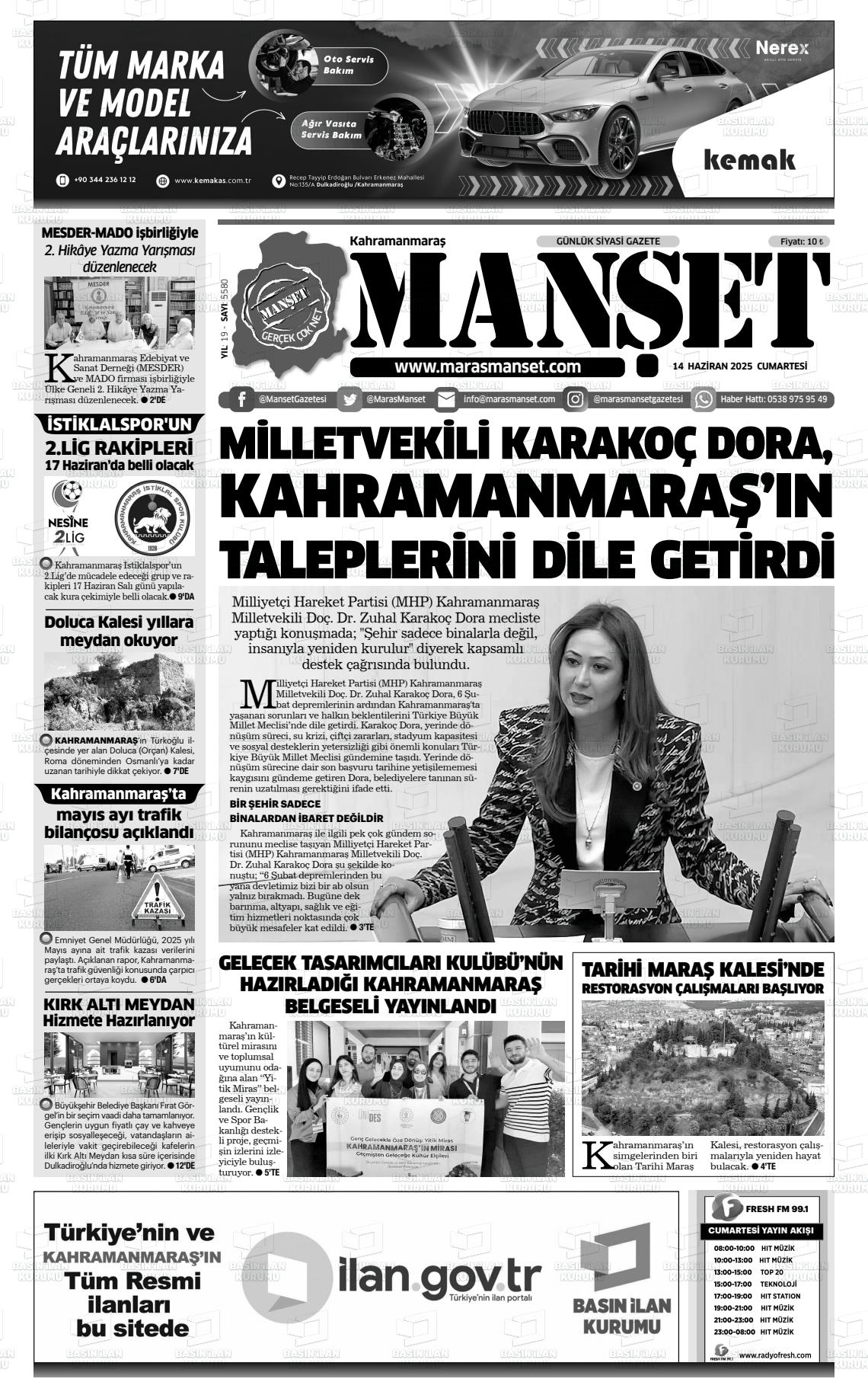 KAHRAMANMARAŞ MANŞET